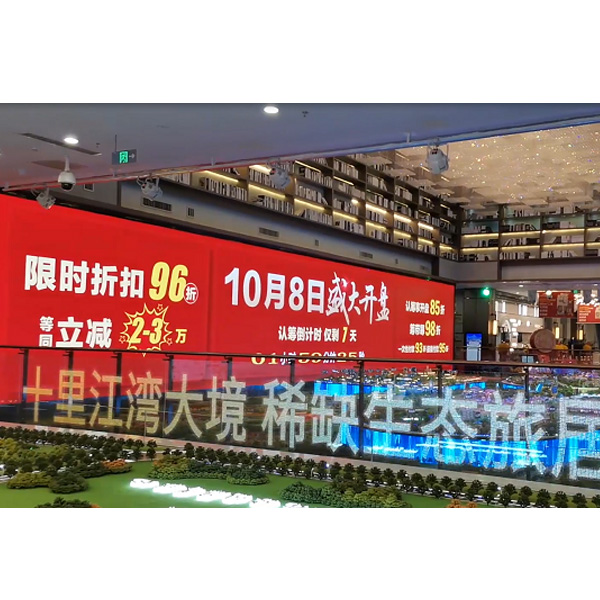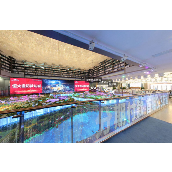 沙盤(pán)的四周?chē)@著的就是LED光電玻璃護(hù)欄屏。其如玻璃一樣透明的外形,透光率高達(dá)95%,與護(hù)欄結(jié)構(gòu)主體一體化,極簡(jiǎn)美觀,既能保證人們看到完整的沙盤(pán)內(nèi)容,又可播放營(yíng)銷(xiāo)中心的標(biāo)語(yǔ)和暢游海底、繁花盛開(kāi)等精美的視頻動(dòng)畫(huà),與前來(lái)買(mǎi)房的顧客進(jìn)行互動(dòng),激發(fā)人們的購(gòu)買(mǎi)...
