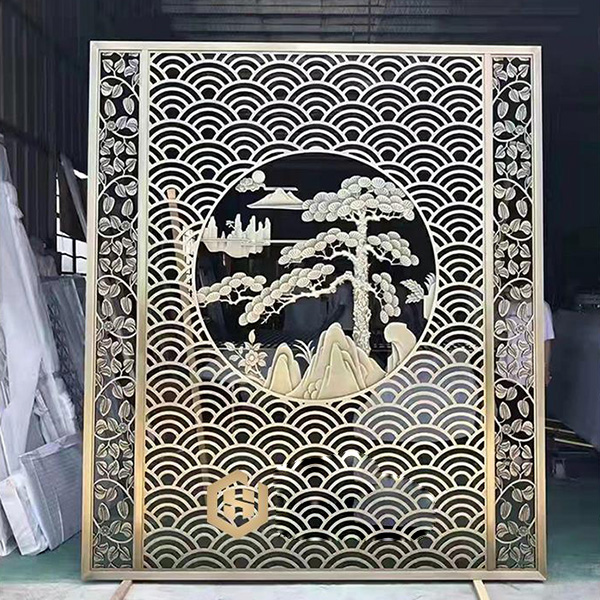 鋁雕屏風(fēng) 鋁板浮雕玄關(guān) 鋁板浮雕鏤空雕花酒店玄關(guān)金屬格柵花格背景墻